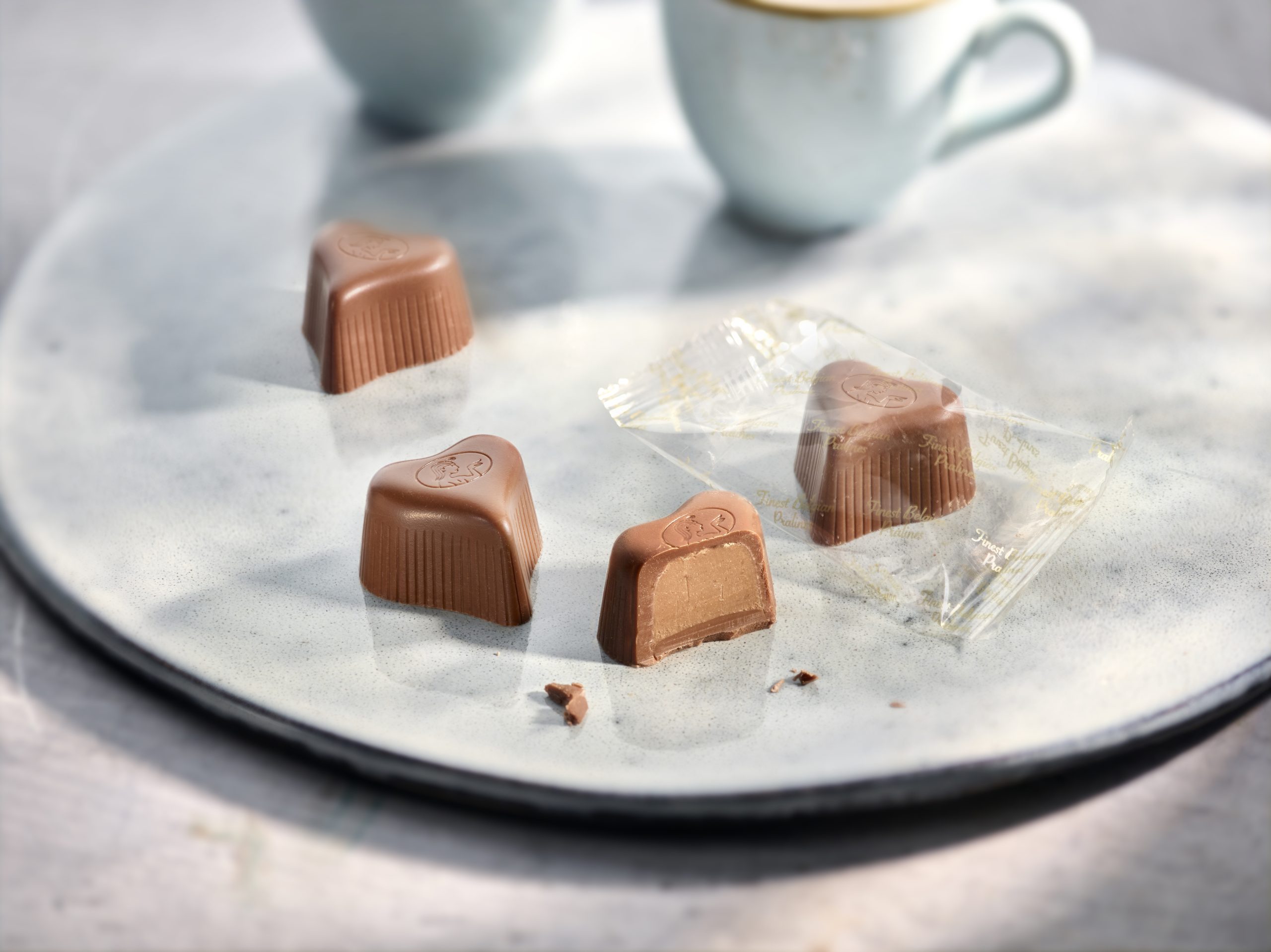 Elke praline wordt individueel verpakt in een zogenaamde “ freshpack”. Eens het blik of de ballotin wordt geopend, beschermt deze de praline tegen invloeden van buitenaf, zoals vocht, bacteriën, … Ze worden in een koelruimte tussen 0° tot +7°C opgeslagen. Jouw hand is de eerste die deze praline aanraakt!